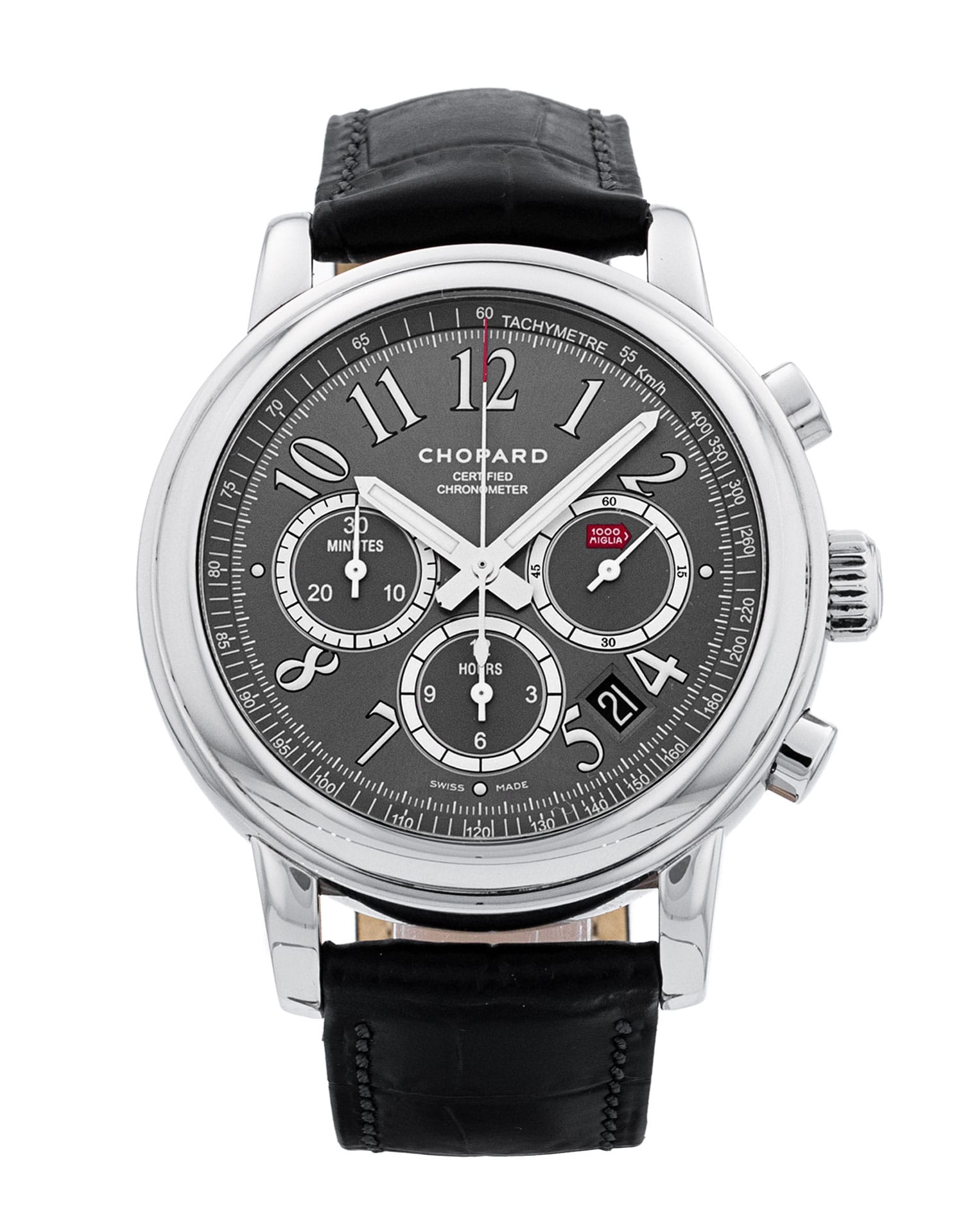 Cette Chopard Mille Miglia 168511-3002 a un cadran de ruthénium arabe et un bracelet en cuir. L'imperméabilité, la précision, le bon fonctionnement et l'état de cette Chopard ont été minutieusement inspectés afin de déterminer le degré de remise en état requis pour répondre à nos normes strictes. Nous avons également étudié sa documentation technique et les archives du fabricant, quand cela s'est avéré possible, afin de garantir l'authenticité de la montre et son passé irréprochable. Pour votre tranquillité d'esprit, toutes nos montres s'accompagnent d'une garantie de 24 mois.