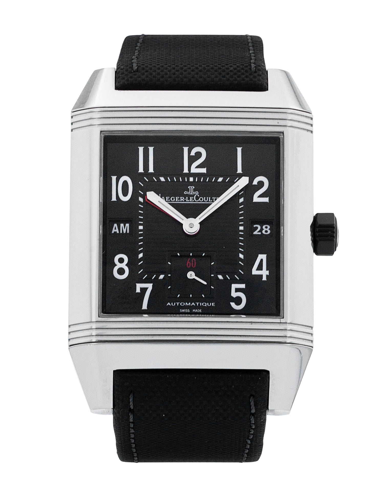 Cette Jaeger-LeCoultre Reverso Squadra Hometime 700867P a un cadran de noir arabe et un bracelet en tissu. La précision, le bon fonctionnement et l'état de cette Jaeger-LeCoultre ont été minutieusement inspectés dans notre centre de réparation Jaeger-LeCoultre certifié afin de déterminer le degré de remise en état requis pour répondre à nos normes strictes. Elle a également été comparée à nos archives afin de garantir son authenticité. Pour votre tranquillité d'esprit, toutes nos montres s'accompagnent d'une garantie de 24 mois.