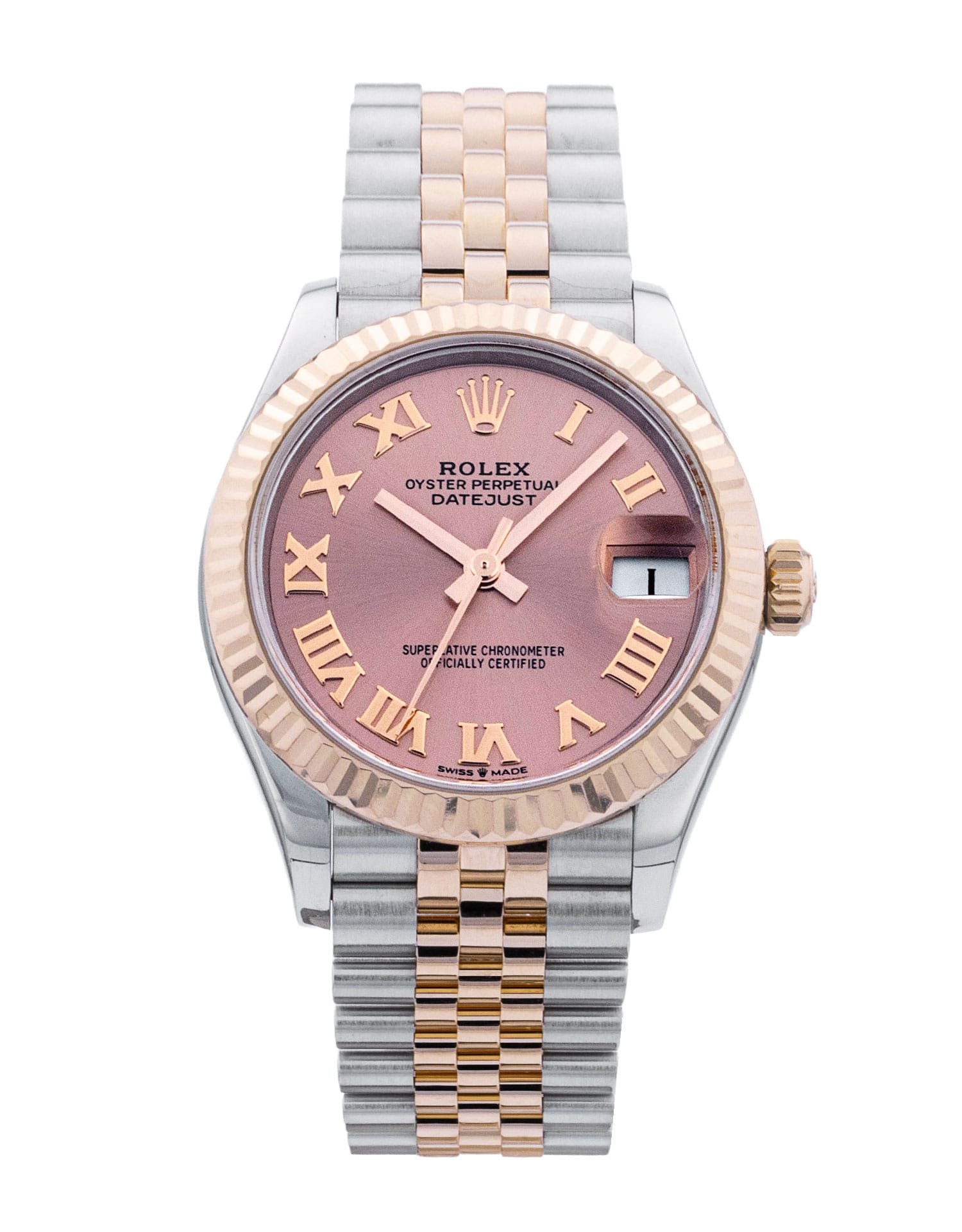 Cette Rolex Datejust Lady 31 278271 a un cadran de chiffre romain rose et un bracelet en bracelet. L'imperméabilité, la précision, le bon fonctionnement et l'état de cette Rolex ont été minutieusement inspectés afin de déterminer le degré de remise en état requis pour répondre à nos normes strictes. Nous avons également étudié sa documentation technique et les archives du fabricant, quand cela s'est avéré possible, afin de garantir l'authenticité de la montre et son passé irréprochable. Pour votre tranquillité d'esprit, nos montres s'accompagnent d'une garantie de 24 mois, ainsi que de toute période restante sur la garantie du fabricant couvrant un produit neuf ou révisé. Afin de préserver la garantie du fabricant, cette montre n’a pas été polie dans notre centre de service.