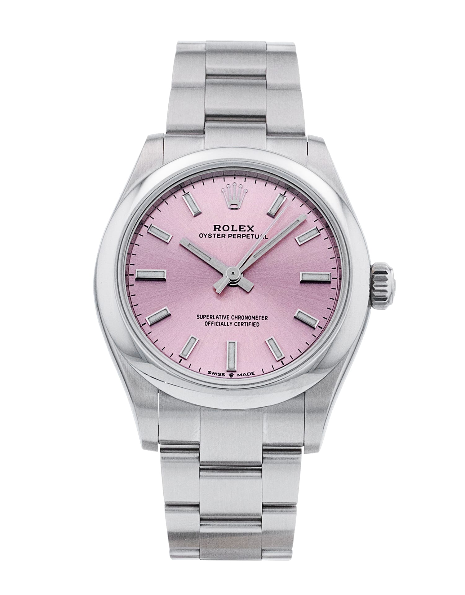 Cette Rolex Oyster Perpetual 277200 a un cadran de baton rose et un bracelet en bracelet. L'imperméabilité, la précision, le bon fonctionnement et l'état de cette Rolex ont été minutieusement inspectés afin de déterminer le degré de remise en état requis pour répondre à nos normes strictes. Nous avons également étudié sa documentation technique et les archives du fabricant, quand cela s'est avéré possible, afin de garantir l'authenticité de la montre et son passé irréprochable. Pour votre tranquillité d'esprit, nos montres s'accompagnent d'une garantie de 24 mois, ainsi que de toute période restante sur la garantie du fabricant couvrant un produit neuf ou révisé. Afin de préserver la garantie du fabricant, cette montre n’a pas été polie dans notre centre de service.