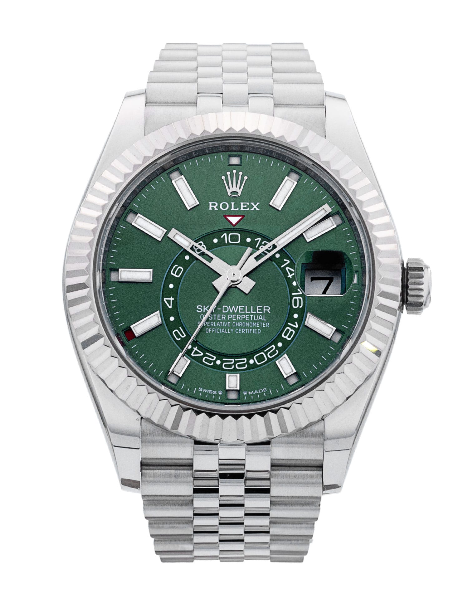 Cette Rolex Sky-Dweller 336934 a un cadran de baton vert et un bracelet en bracelet. L'imperméabilité, la précision, le bon fonctionnement et l'état de cette Rolex ont été minutieusement inspectés afin de déterminer le degré de remise en état requis pour répondre à nos normes strictes. Nous avons également étudié sa documentation technique et les archives du fabricant, quand cela s'est avéré possible, afin de garantir l'authenticité de la montre et son passé irréprochable. Pour votre tranquillité d'esprit, nos montres s'accompagnent d'une garantie de 24 mois, ainsi que de toute période restante sur la garantie du fabricant couvrant un produit neuf ou révisé. Afin de préserver la garantie du fabricant, cette montre n’a pas été polie dans notre centre de service.