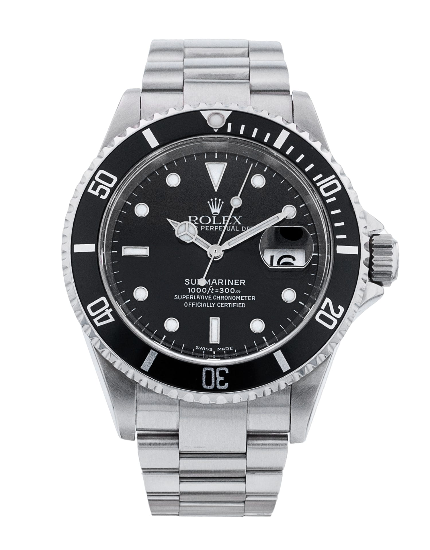Cette Rolex Submariner 16610 a un cadran de noir et un bracelet en bracelet. L'imperméabilité, la précision, le bon fonctionnement et l'état de cette Rolex ont été minutieusement inspectés afin de déterminer le degré de remise en état requis pour répondre à nos normes strictes. Nous avons également étudié sa documentation technique et les archives du fabricant, quand cela s'est avéré possible, afin de garantir l'authenticité de la montre et son passé irréprochable. Pour votre tranquillité d'esprit, nos montres s'accompagnent d'une garantie de 24 mois, ainsi que de toute période restante sur la garantie du fabricant couvrant un produit neuf ou révisé. Afin de préserver la garantie du fabricant, cette montre n’a pas été polie dans notre centre de service.